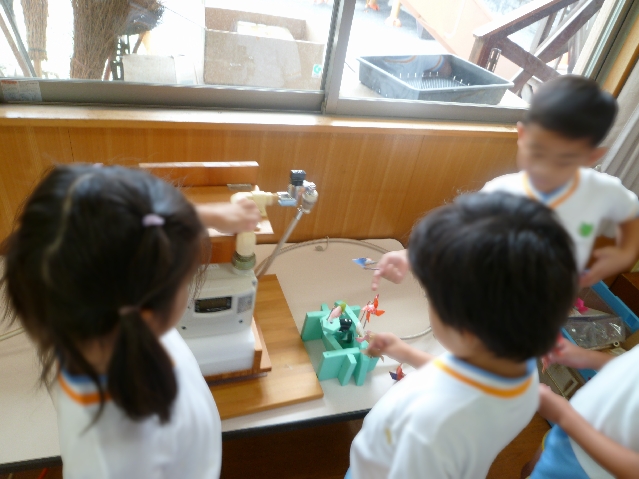 <LPガスメーター感震遮実験の興味津々の園児たち>